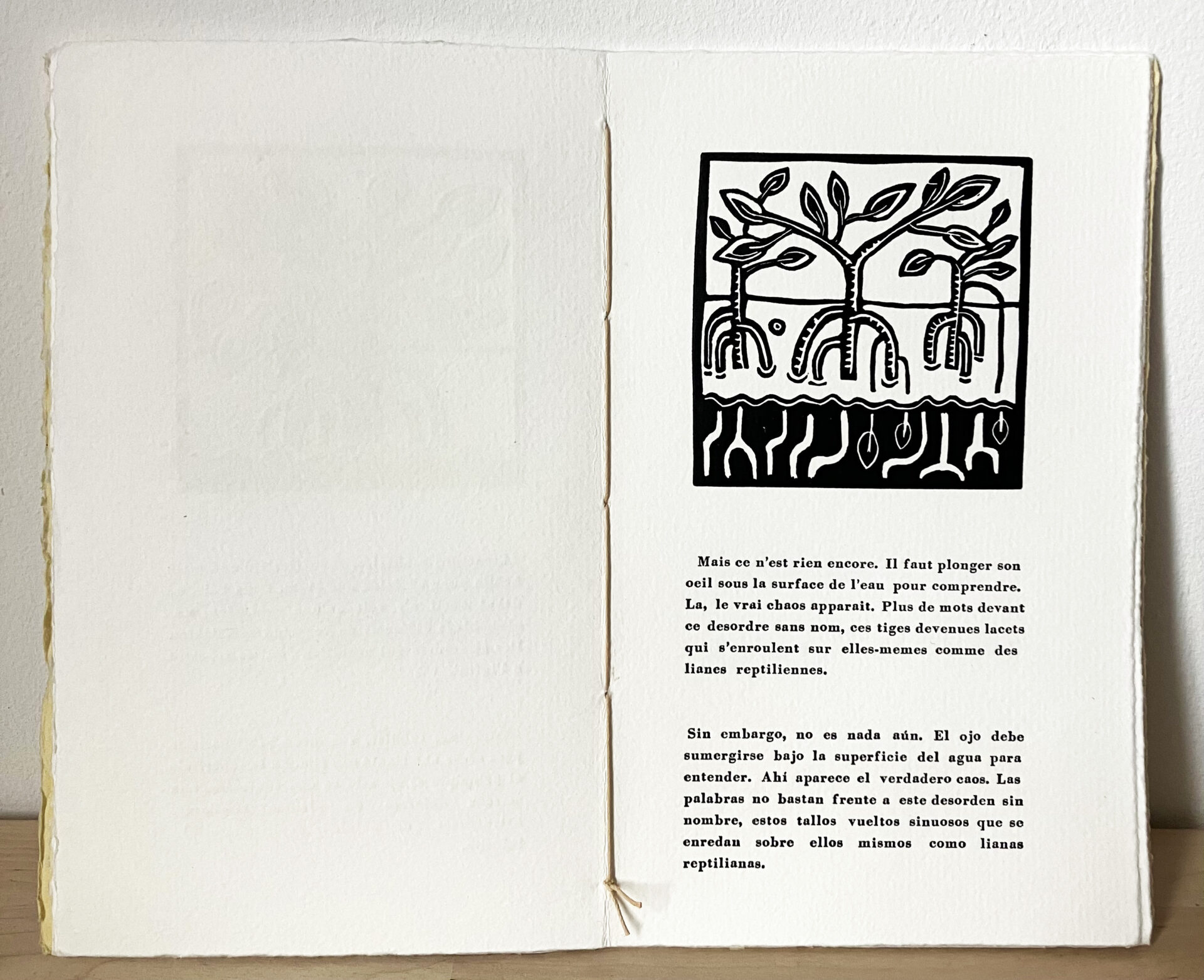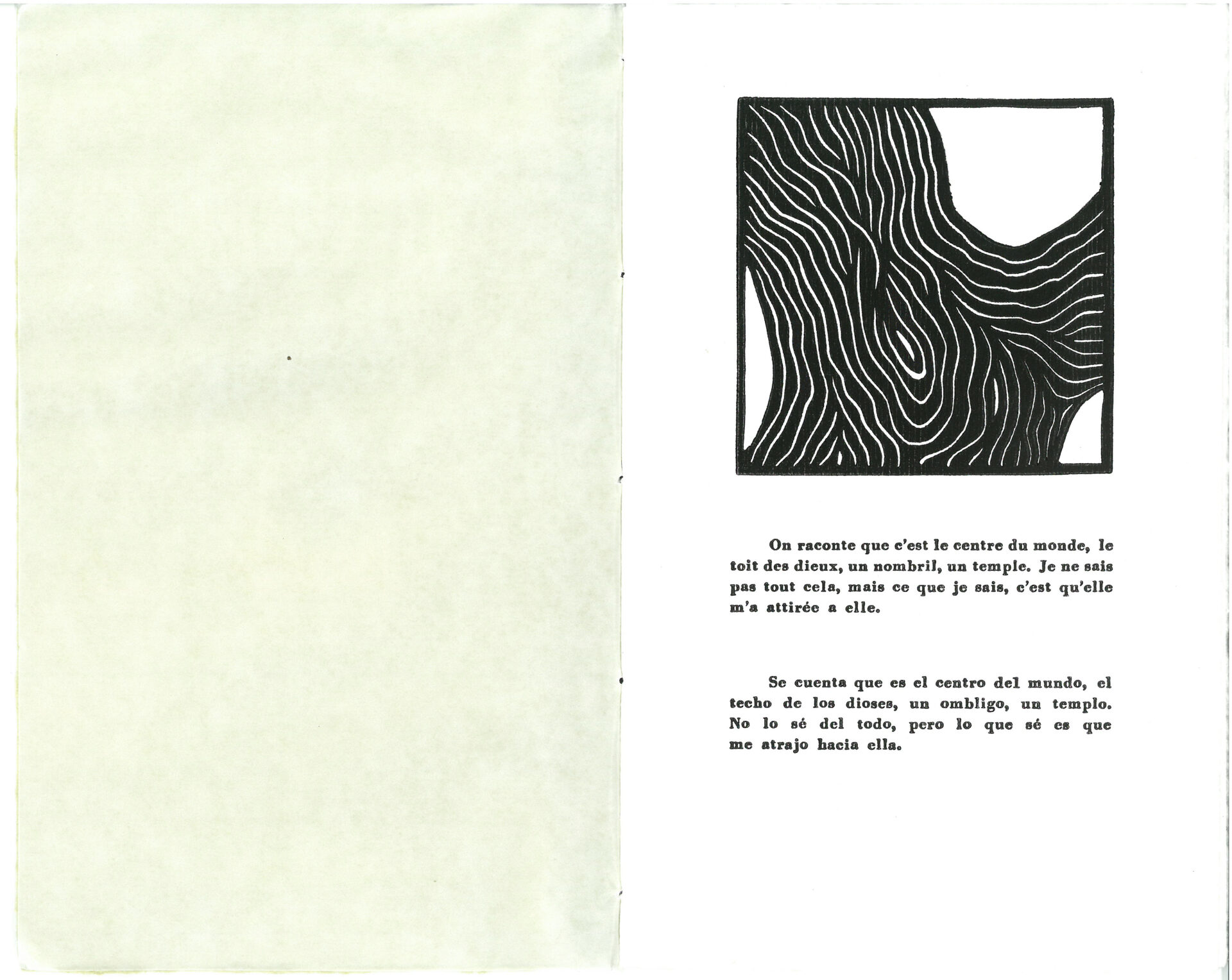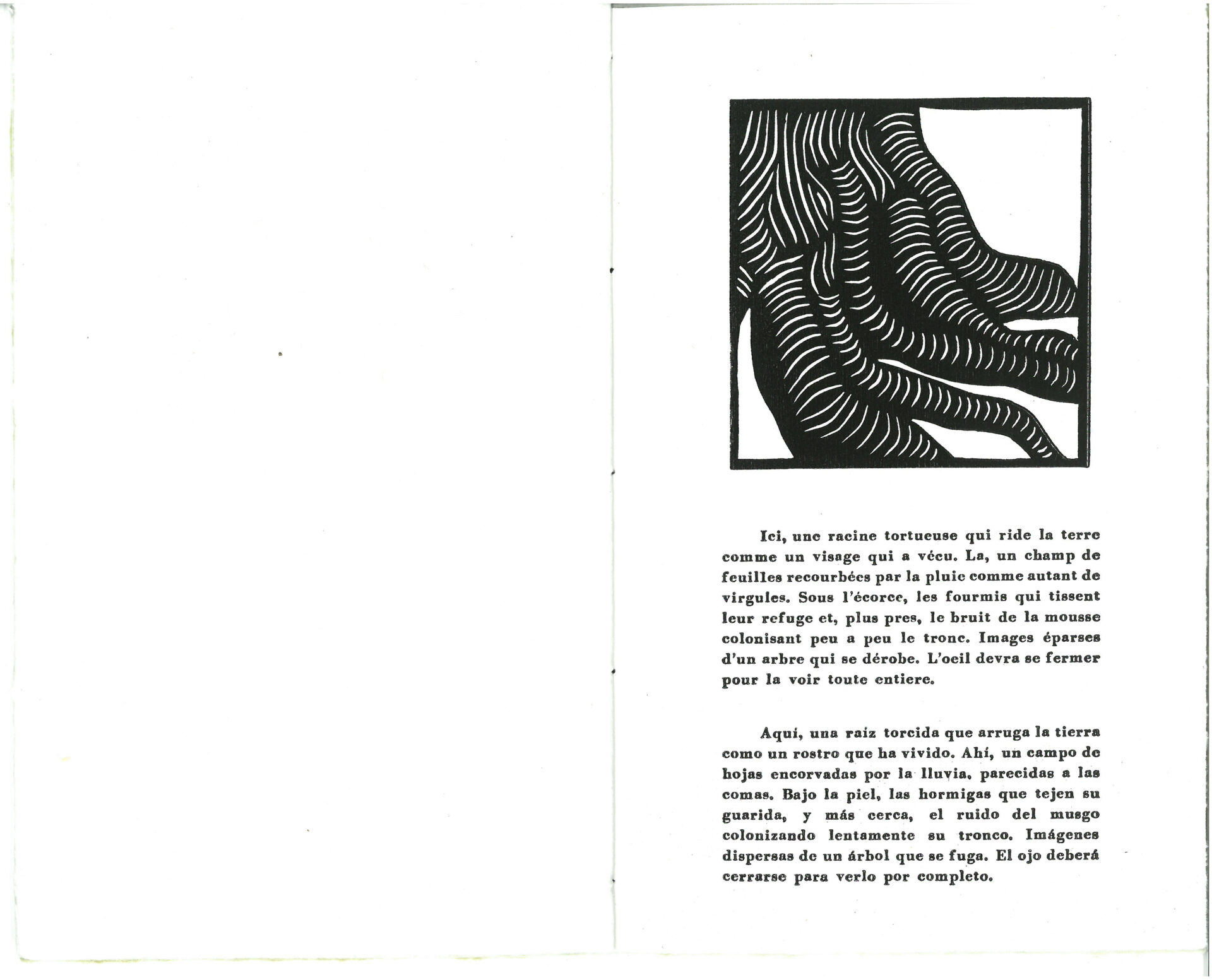 Original texts and linocuts. Book hand printed in lead type, bilingual co-edition with La Ceiba Gráfica, Mexico, 2023 (excerpt)